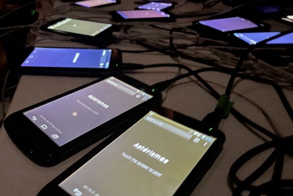 Autre idée, liée à la reconnaissance de gestes des auditeurs via les capteurs de leur smartphone – qui sert déjà, rappelons-le[1] à la diffusion distribuée du son : « Dès lors que le spectateur s’aperçoit qu’il tient véritablement des sons en main, l’idée est de lui donner une forme de contrôle sur ces sons et leurs diffusions, suggèrent Aki et Jean-Philippe : on peut imaginer des petits jeux sonores, voire la possibilité de faire circuler un même son d’un spectateur à un autre grâce à un geste spécifique, qui doit toutefois être à la fois clair et intuitif. »