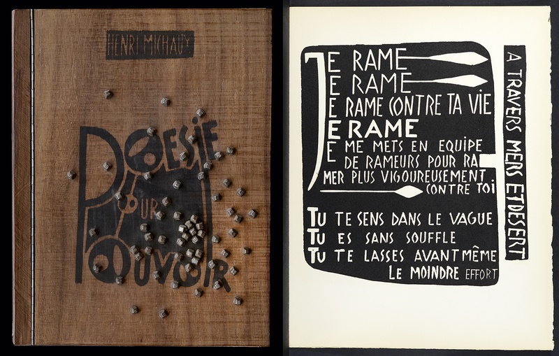 Couverture et page du livre-objet Poésie pour pouvoir d'Henri Michaux
