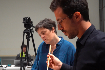 Georgia Spiropoulos avec Alvise Sinivia, pianiste, en studio à l'Ircam © Ircam, Murielle Ducas